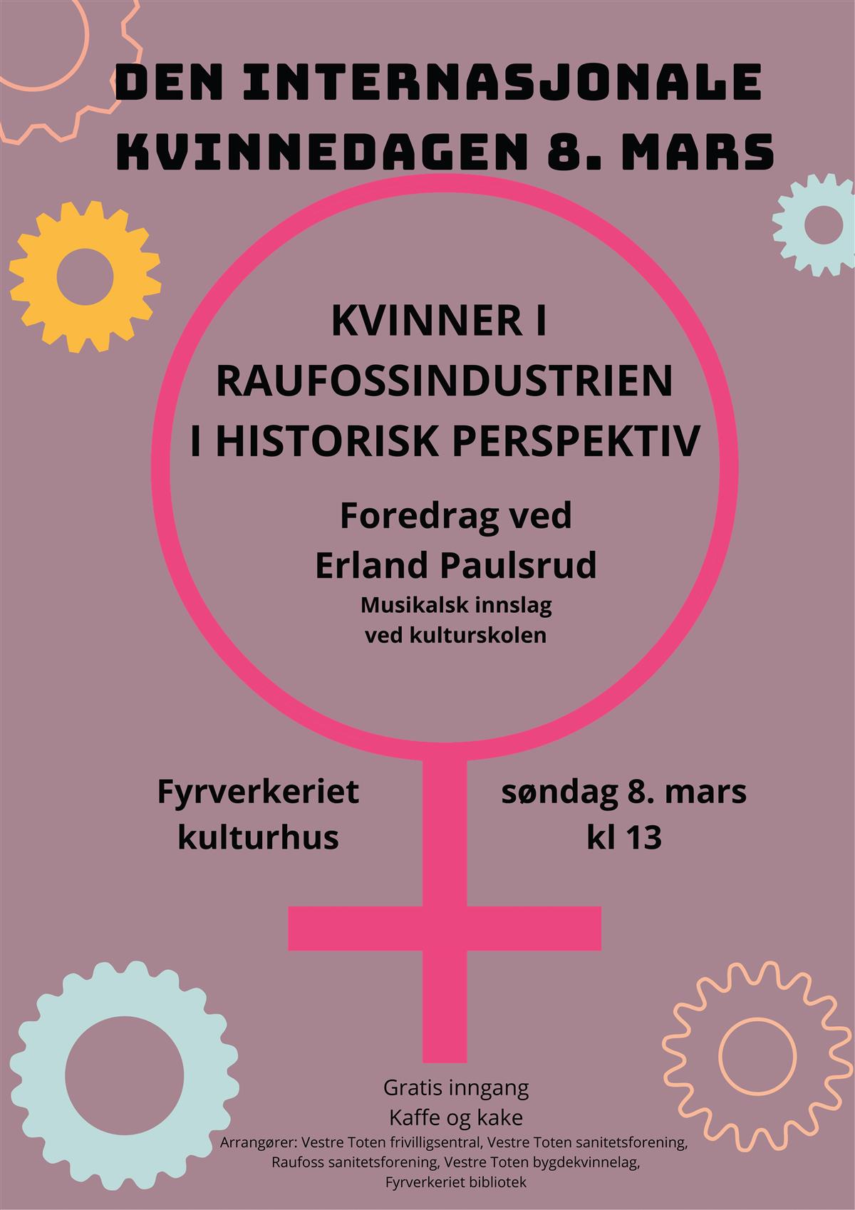 Arrangør: Vestre Toten frivilligsentral, Vestre Toten sanitetsforening, Raufoss sanitetsforening, Vestre Toten bygdekvinnelag, Fyrverkeriet bibliotek