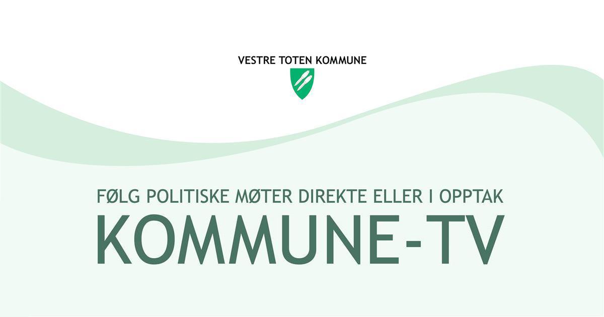 Kommune-TV: Se kommunestyremøtet torsdag 09.04.2026 klokken 18.00Torsdag 09.04.2026 klokken 18.00 - 20.00 er det møte i kommunestyret, velkommen til å følge dette møtet via Kommune-TV.Følg kommunestyremøteneVia Kommune-TV kan man følge direkte overføringer fra kommunestyresalen i Vestre Toten kommune, med mulighet for å se overføringen i opptak.Her er lenke til Kommune-TV:https://vestre-toten.kommunetv.no/ℹ️ Kommune-TV på kommunens hjemmesideKommune-TV ligger stasjonært på kommunens hjemmeside under fanen Politikk, innsyn, planverk og samfunn
