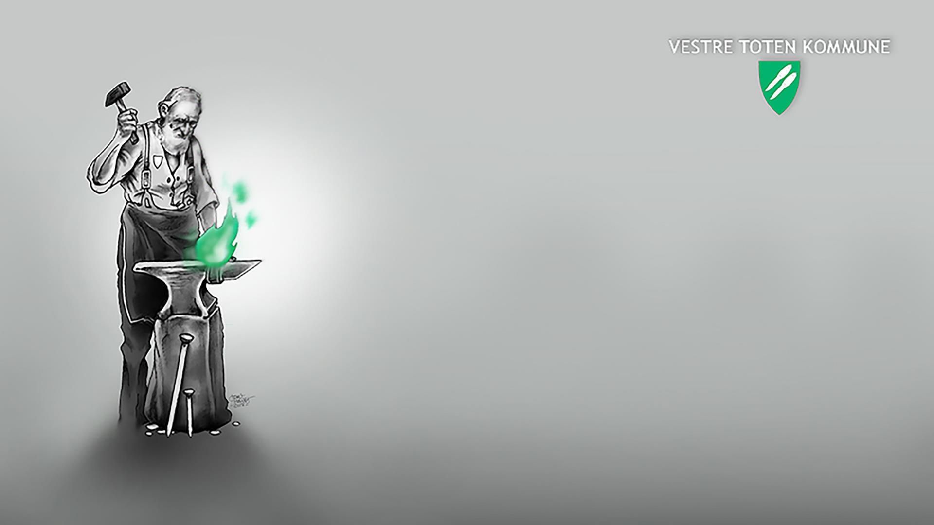 Bakgrunnene er lokalt/kommunalt forankret og komponert med fokus på lokalt landskap/lokal geografi, kommunalt virke/omdømmebygging, estetikk og innslag av humor - alt vevet sammen i henhold til kommunens grafiske profil. Kommunevåpenlogoen er implementert, og alle bilder er fotokreditert og/eller produsert av Vestre Toten kommune.