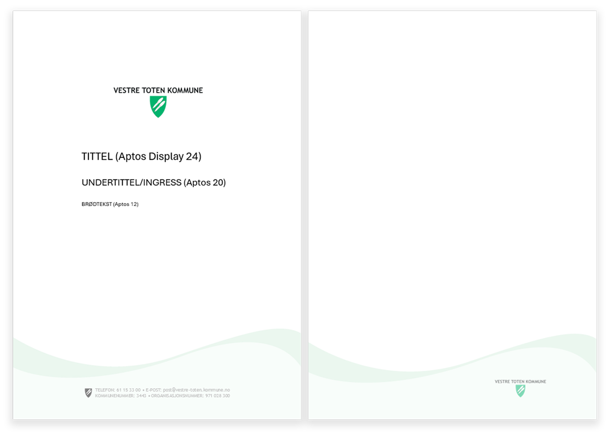 Anbefalt font er Aptos (Aptos Display 30 på overskrift / Aptos Light 24 på brødtekst)