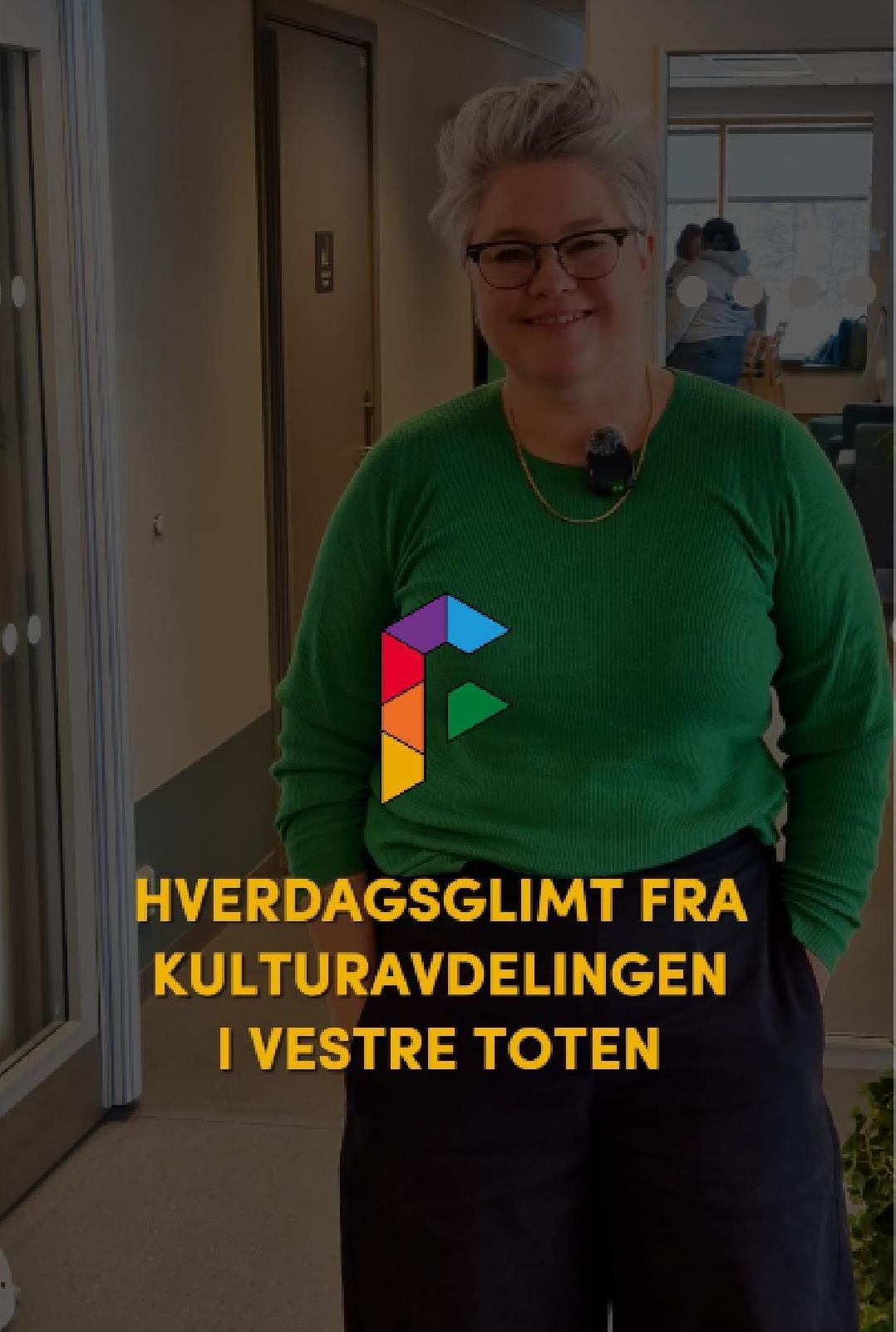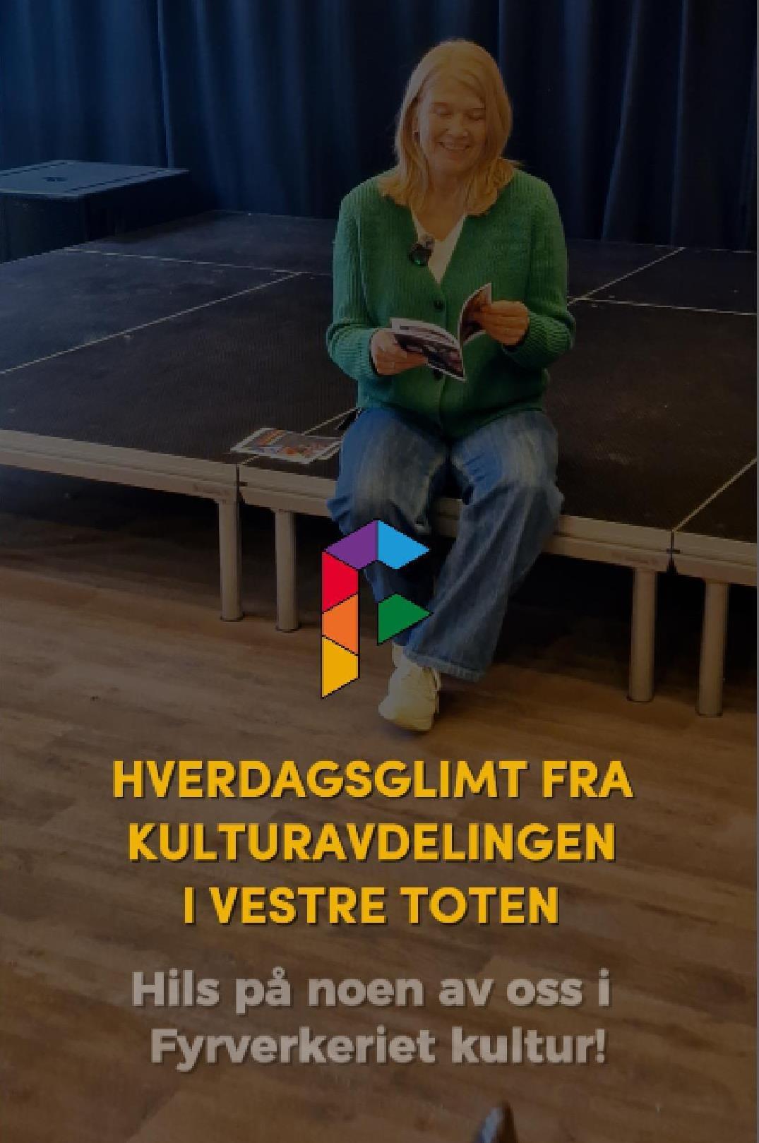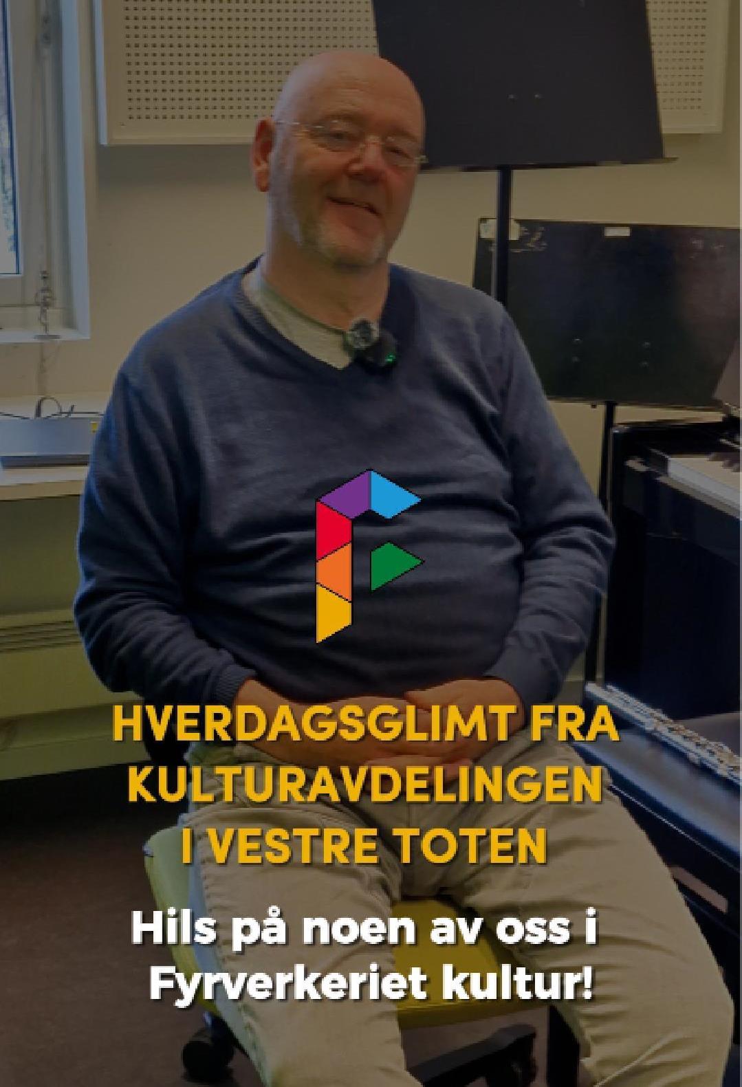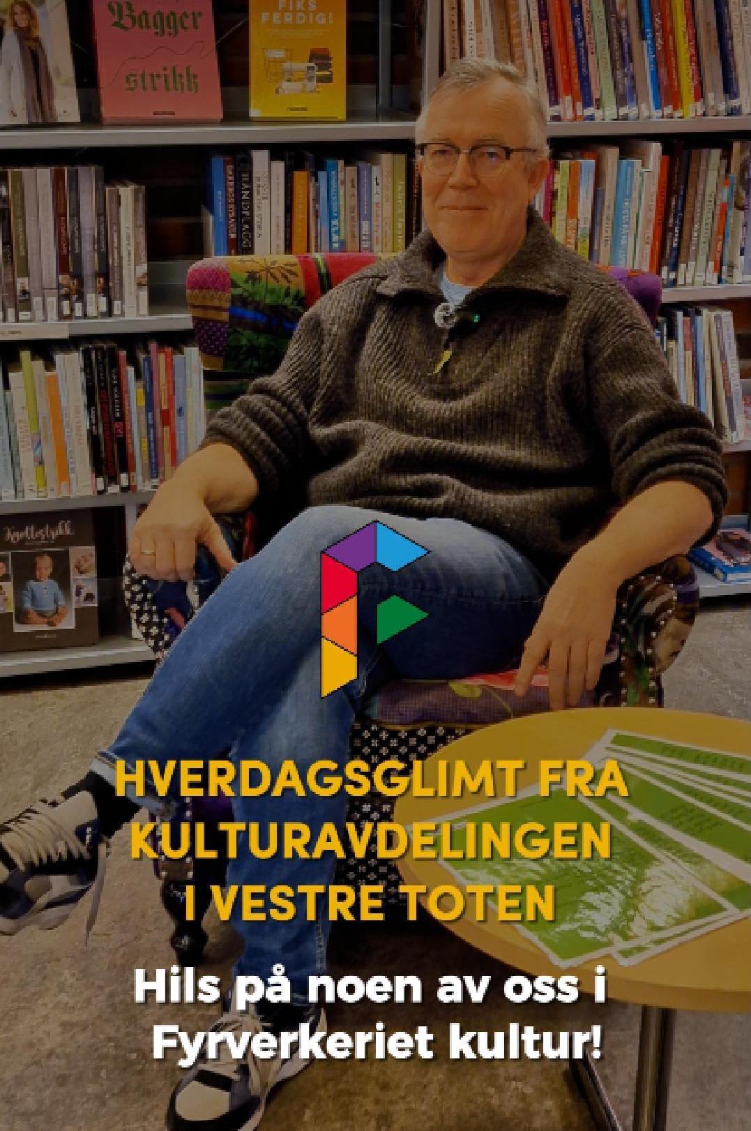 HverdagsglimtI 2024/2025 ble mange av de ansatte i kulturavdelingen i Vestre Toten intervjuet om sin hverdag og hvorfor de mener kulturfeltet er viktig. Lenker til videoer ligger i teksten tilhørende bilde.Se videointervju av kulursjefen Elisabeth Lund og hennes hverdag! Se videointervju av Hilde Leonardsen og hennes hverdag som leder på Fyrverkeriet ungdomshus! Se videointervju av Mona Myrland og hennes hverdag som leder på Fyrverkeriet bibliotek! Se videointervju av Nina Nedberg og hennes hverdag som leder på Fyrverkeriet bibliotek! Se videointervju av Anne Linn Dambråten og hennes hverdag med å tilrettelegge for aktiviteter for voksne! Se videointervju av Geir Sollie og hans hverdag som rådgiver innen idrett og friluftsliv! Se videointervju av Hilde Skogli og hennes hverdag som koordinator for SLT og støttekontakttjenesten! Se videointervju av Tommy Svendsen og hans hverdag som aktivitetskontakt!Se videointervju av Benedikte Narum og hennes hverdag som fagleder og teaterlærer på Fyrverkeriet kulturskole!Fyrverkeriet kultur – BenedikteSe videointervju av Maria Nyheim og hennes hverdag med ansvar for kommunikasjon og design! Se videointervju av Mia Ruud og hennes hverdag på Fyrverkeriet bibliotek i arbeid med barn og ungdom! Se videointervju av Line Horntveth og hennes hverdag på Fyrverkeriet kulturskole med småtrølltræff og ute og sprer kulturglede i omsorgsboliger og skoler!Se videointervju av Nina Vedal og hennes hverdag på Fyrverkeriet ungdomshus!Se videointervju av Sigurd Skogum Riise og hans hverdag som pianolærer på Fyrverkeriet kulturskole!Se videointervju av Ingvill Solberg og hennes hverdag på Fyrverkeriet bibliotek!Fyrverkeriet kultur – IngvillSe videointervju av Leif-Kristian Tøftum og hans hverdag på Fyrverkeriet bibliotek og verkstedet der!Se videointervju av Jelena Markovic og hennes hverdag på Fyrverkeriet kulturskole og ungdomshus!Fyrverkeriet kultur – JelenaSe videointervju av Ståle Strandeng og hans hverdag på Fyrverkeriet bibliotek og ungdomshus!Se videointervju av Pooneh Ronagh og hennes hverdag som kunstlærer på Fyrverkeriet kulturskole!Se videointervju av Espen Glæserud og hans hverdag på Fyrverkeriet ungdomshus!Fyrverkeriet kultur – EspenSe videointervju av Marieke Bettman og hennes hverdag som fiolinlærer på Fyrverkeriet kulturskole!Fyrverkeriet kultur – MariekeSe videointervju av Beate Karita Engeli og hennes hverdag på juniorklubben og ungdomsklubben!Se videointervju av Erik Wang og hans hverdag på kulturskolen!Se videointervju av Alexander Bryntesen og hans hverdag på ungdomsklubben!Se videointervju av Torhild Haug og hennes hverdag på Fyrverkeriet kulturhus!