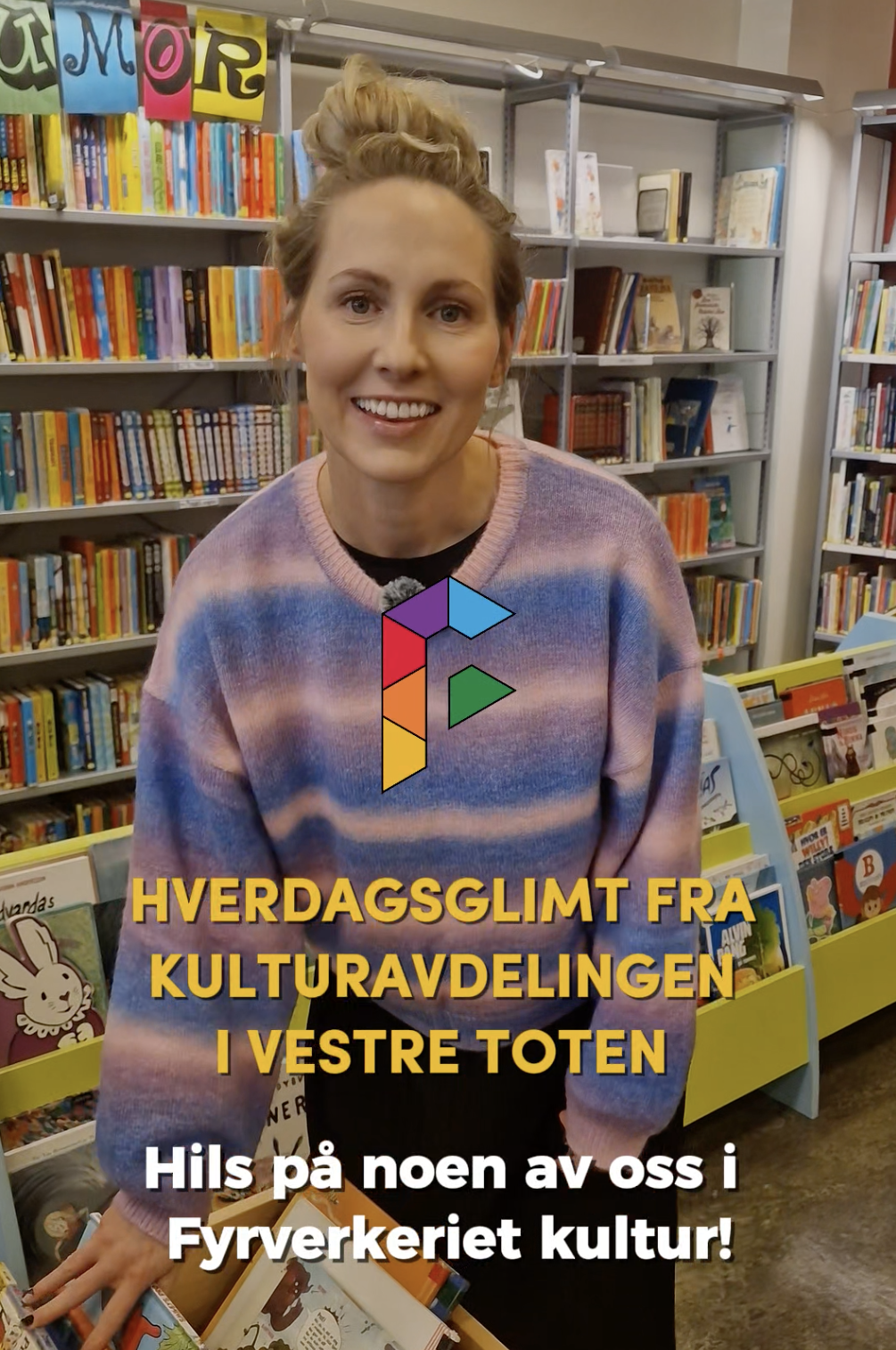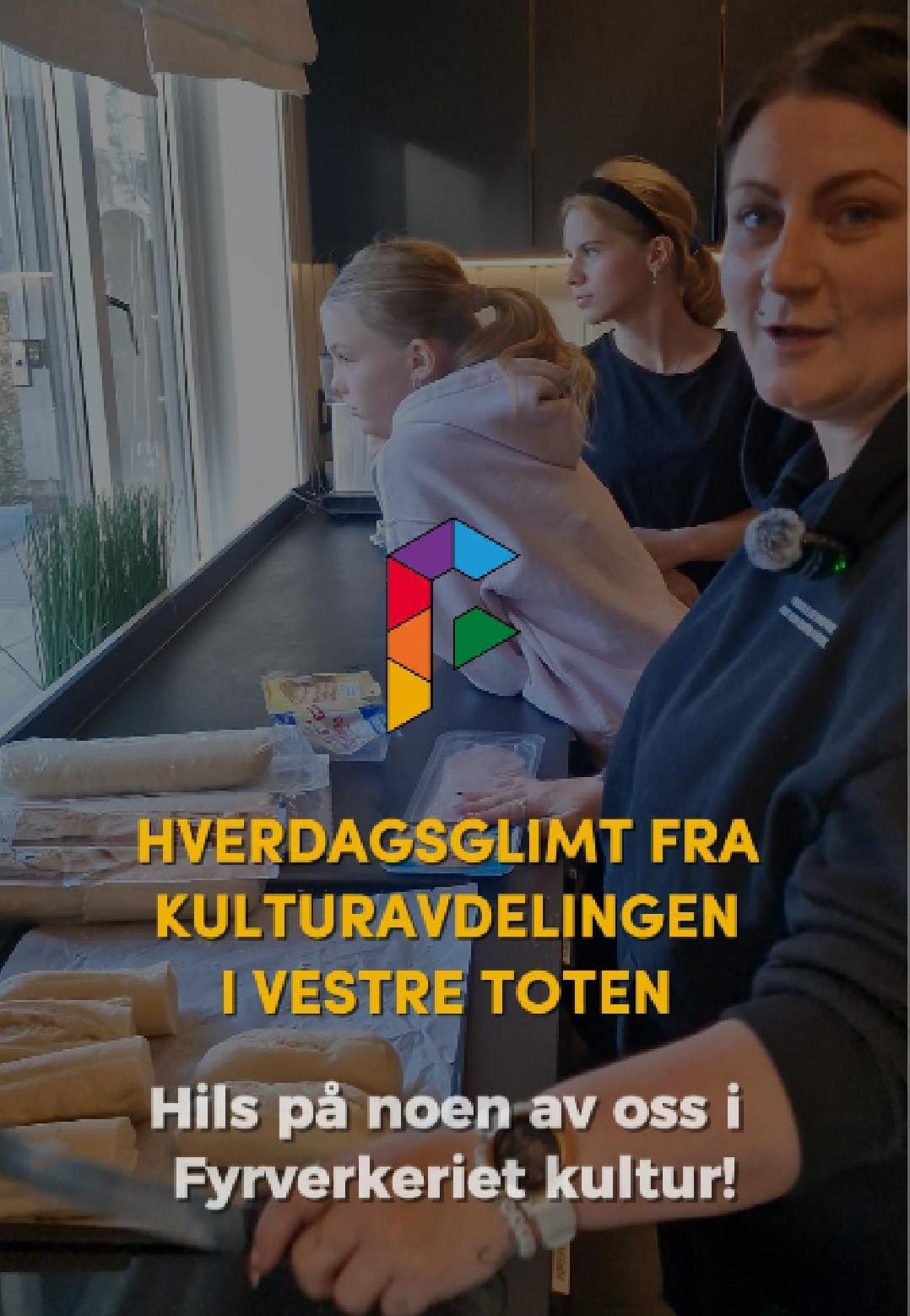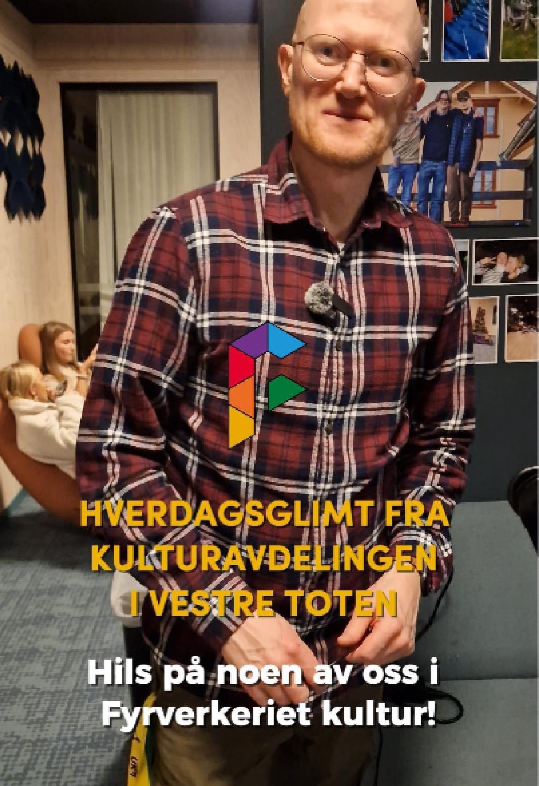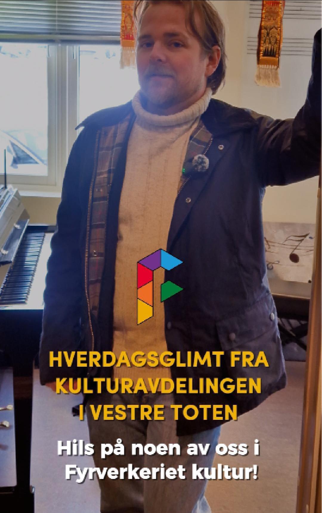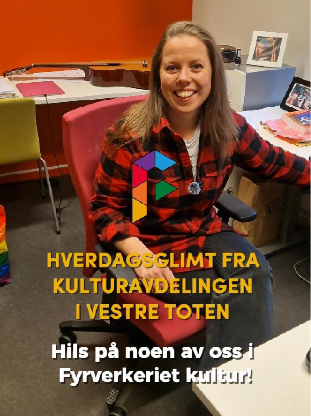 HverdagsglimtI 2024/2025 ble mange av de ansatte i kulturavdelingen i Vestre Toten intervjuet om sin hverdag og hvorfor de mener kulturfeltet er viktig. Lenker til videoer ligger i teksten tilhørende bilde.Se videointervju av kulursjefen Elisabeth Lund og hennes hverdag! Se videointervju av Hilde Leonardsen og hennes hverdag som leder på Fyrverkeriet ungdomshus! Se videointervju av Mona Myrland og hennes hverdag som leder på Fyrverkeriet bibliotek! Se videointervju av Nina Nedberg og hennes hverdag som leder på Fyrverkeriet bibliotek! Se videointervju av Anne Linn Dambråten og hennes hverdag med å tilrettelegge for aktiviteter for voksne! Se videointervju av Geir Sollie og hans hverdag som rådgiver innen idrett og friluftsliv! Se videointervju av Hilde Skogli og hennes hverdag som koordinator for SLT og støttekontakttjenesten! Se videointervju av Tommy Svendsen og hans hverdag som aktivitetskontakt!Se videointervju av Benedikte Narum og hennes hverdag som fagleder og teaterlærer på Fyrverkeriet kulturskole!Fyrverkeriet kultur – BenedikteSe videointervju av Maria Nyheim og hennes hverdag med ansvar for kommunikasjon og design! Se videointervju av Mia Ruud og hennes hverdag på Fyrverkeriet bibliotek i arbeid med barn og ungdom! Se videointervju av Line Horntveth og hennes hverdag på Fyrverkeriet kulturskole med småtrølltræff og ute og sprer kulturglede i omsorgsboliger og skoler!Se videointervju av Nina Vedal og hennes hverdag på Fyrverkeriet ungdomshus!Se videointervju av Sigurd Skogum Riise og hans hverdag som pianolærer på Fyrverkeriet kulturskole!Se videointervju av Ingvill Solberg og hennes hverdag på Fyrverkeriet bibliotek!Fyrverkeriet kultur – IngvillSe videointervju av Leif-Kristian Tøftum og hans hverdag på Fyrverkeriet bibliotek og verkstedet der!Se videointervju av Jelena Markovic og hennes hverdag på Fyrverkeriet kulturskole og ungdomshus!Fyrverkeriet kultur – JelenaSe videointervju av Ståle Strandeng og hans hverdag på Fyrverkeriet bibliotek og ungdomshus!Se videointervju av Pooneh Ronagh og hennes hverdag som kunstlærer på Fyrverkeriet kulturskole!Se videointervju av Espen Glæserud og hans hverdag på Fyrverkeriet ungdomshus!Fyrverkeriet kultur – EspenSe videointervju av Marieke Bettman og hennes hverdag som fiolinlærer på Fyrverkeriet kulturskole!Fyrverkeriet kultur – MariekeSe videointervju av Beate Karita Engeli og hennes hverdag på juniorklubben og ungdomsklubben!Se videointervju av Erik Wang og hans hverdag på kulturskolen!Se videointervju av Alexander Bryntesen og hans hverdag på ungdomsklubben!Se videointervju av Torhild Haug og hennes hverdag på Fyrverkeriet kulturhus!